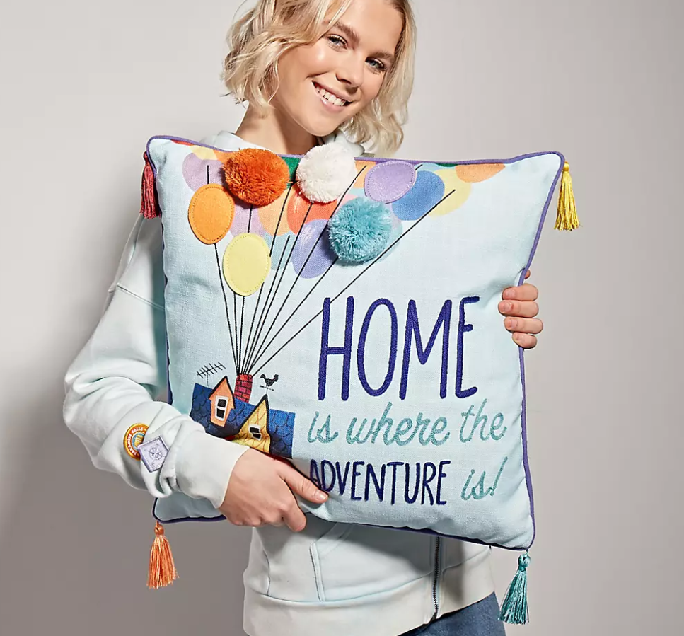 Dream about your next adventure to Paradise Falls with this charming cushion inspired by Disney Pixar's Up. The characterful design features Carl and Ellie's balloon-propelled house and 'Home is where the adventure is!' wording.
