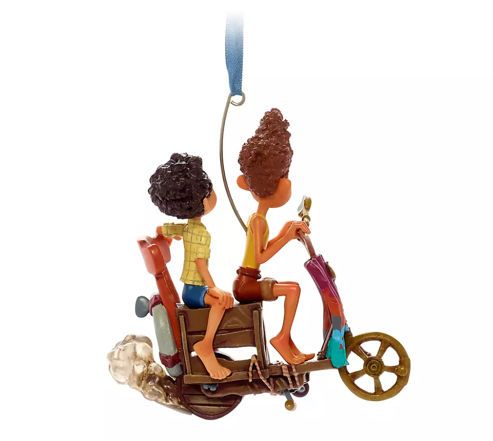 In their human guise, sea monsters Luca and Alberto take a ride through the holidays on a homemade bike. Salute the season Italian-style with this ornament!