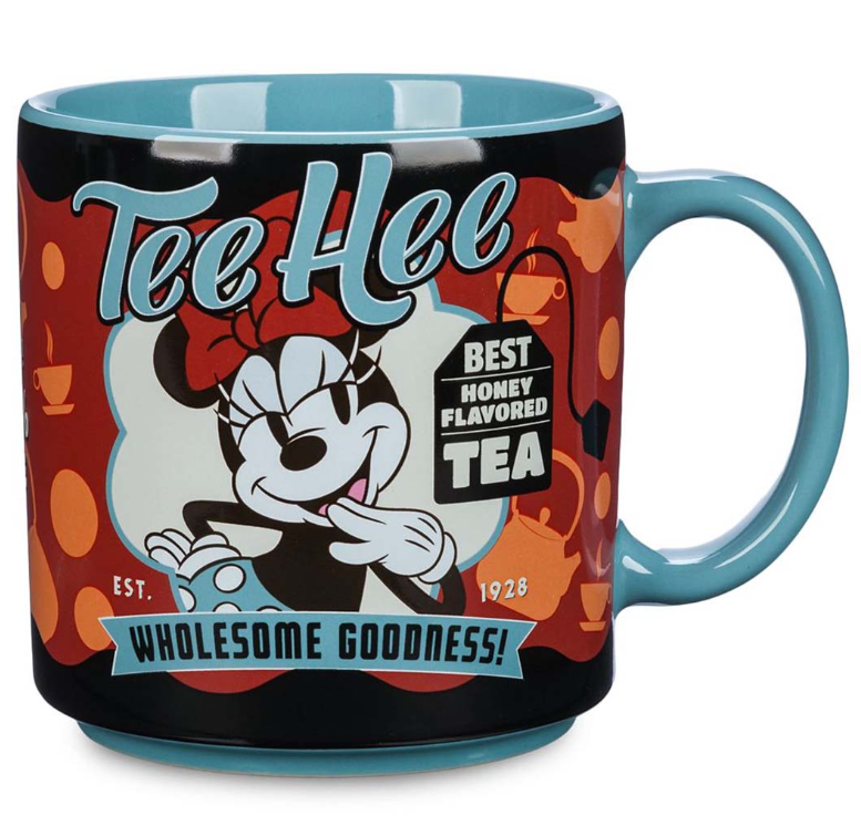 Tee Hee! Minnie Mouse stars on this adorable ceramic mug featuring art that looks like vintage advertising for the ''best honey flavored tea.'' It really is ''tea-licious,'' but this honey of a mug works just as well for coffee or cocoa too