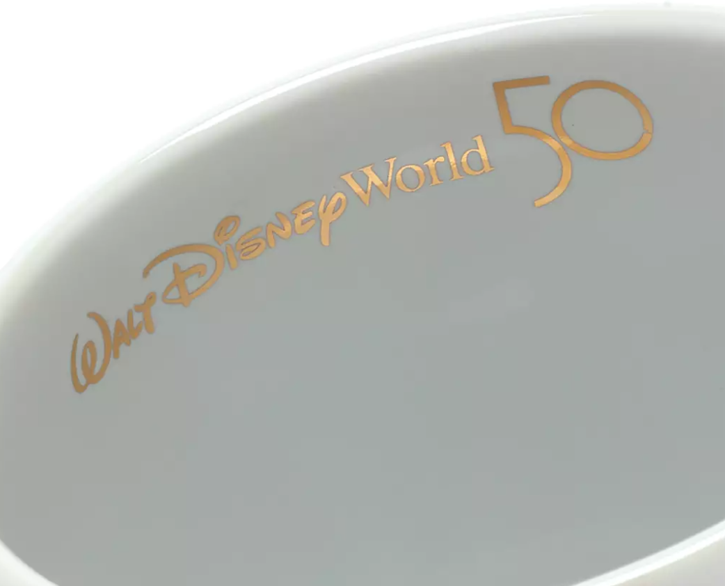 Drink in the delights of The World's Most Magical Celebration with this Walt Disney World 50th Anniversary mug. The ceramic design of this great souvenir features the Fantasyland Castle on the outside, while the inside has the anniversary logo.